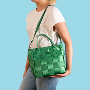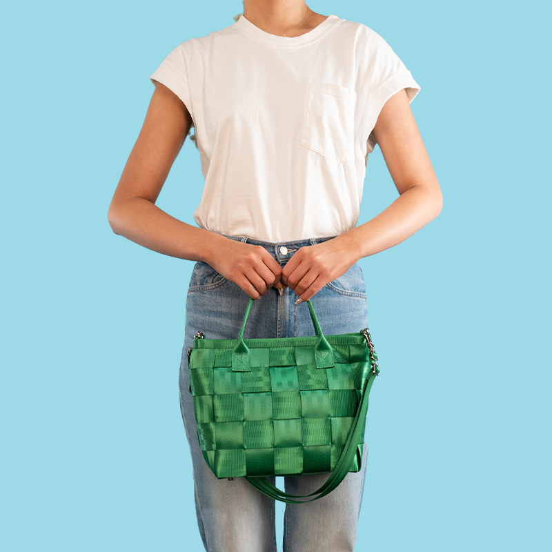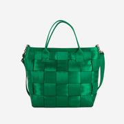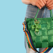 The Crossbody Tote features our iconic woven seatbelt design in an easy to carry style with handles and a crossbody strap. The inside features our multicolor monogram lining with two slip pockets and one zip pocket.