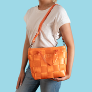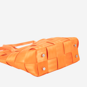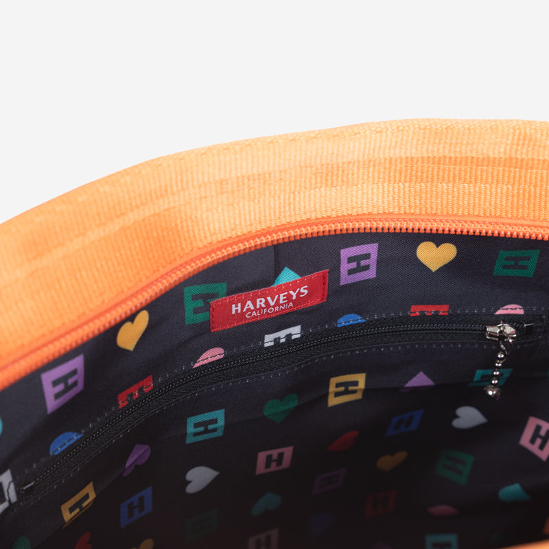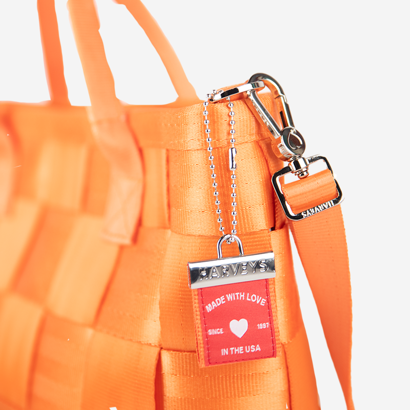The Crossbody Tote features our iconic woven seatbelt design in an easy to carry style with handles and a crossbody strap. The inside features our multicolor monogram lining with two slip pockets and one zip pocket.