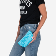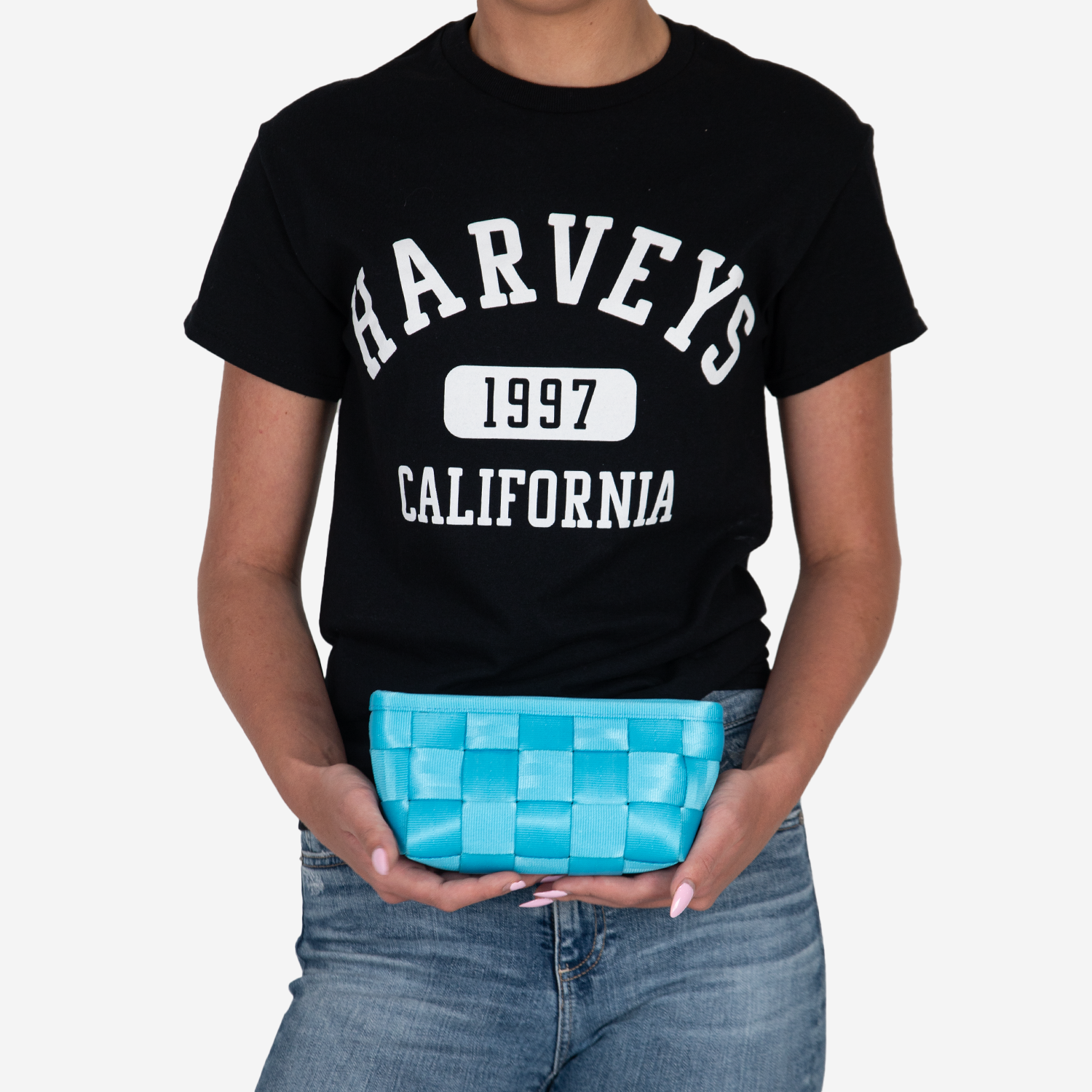 Travel in style with our Triangle Makeup Case! Great for staying organized, this accessory features our woven seatbelt design, is fully lined and finished with a zip top.