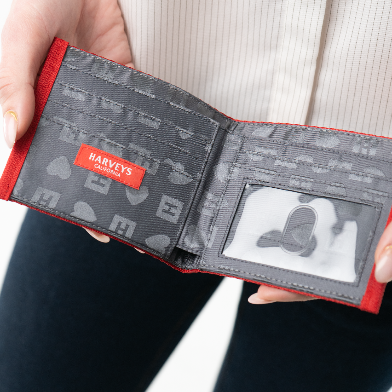 Our Billfold features a slim design that goes with everything and is perfect for every day. This accessory is made from durable seatbelt and comes fully lined with slip pockets for credit cards and a card window for your ID.