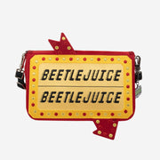 Having trouble with the living? This is your sign to call the afterlife’s leading bio-exorcist! This Medium Foldover Crossbody is inspired by Beetlejuice’s sign and features durable Scarlet seatbelt with a Black crossbody strap. Comes with a Beetlejuice charm and a lining with polaroids from the film.