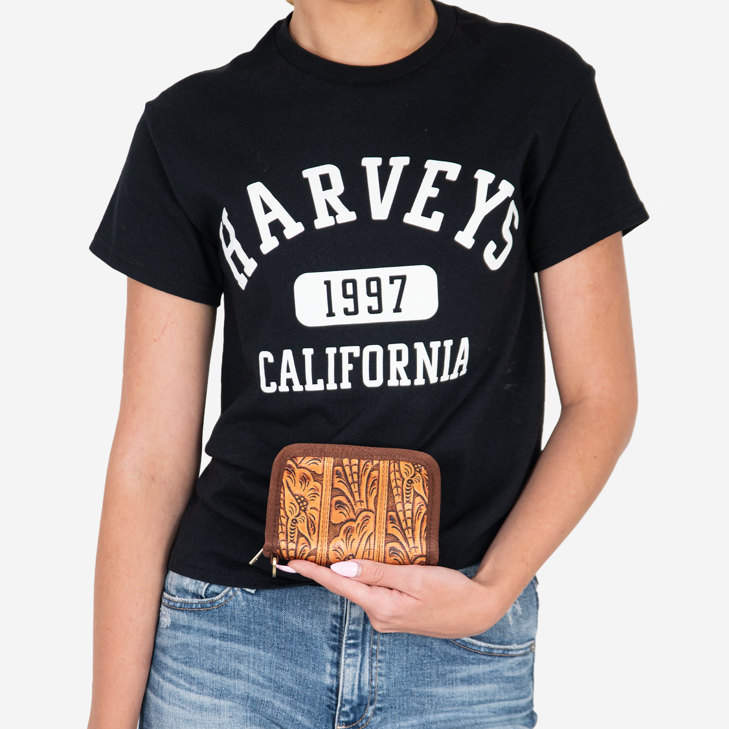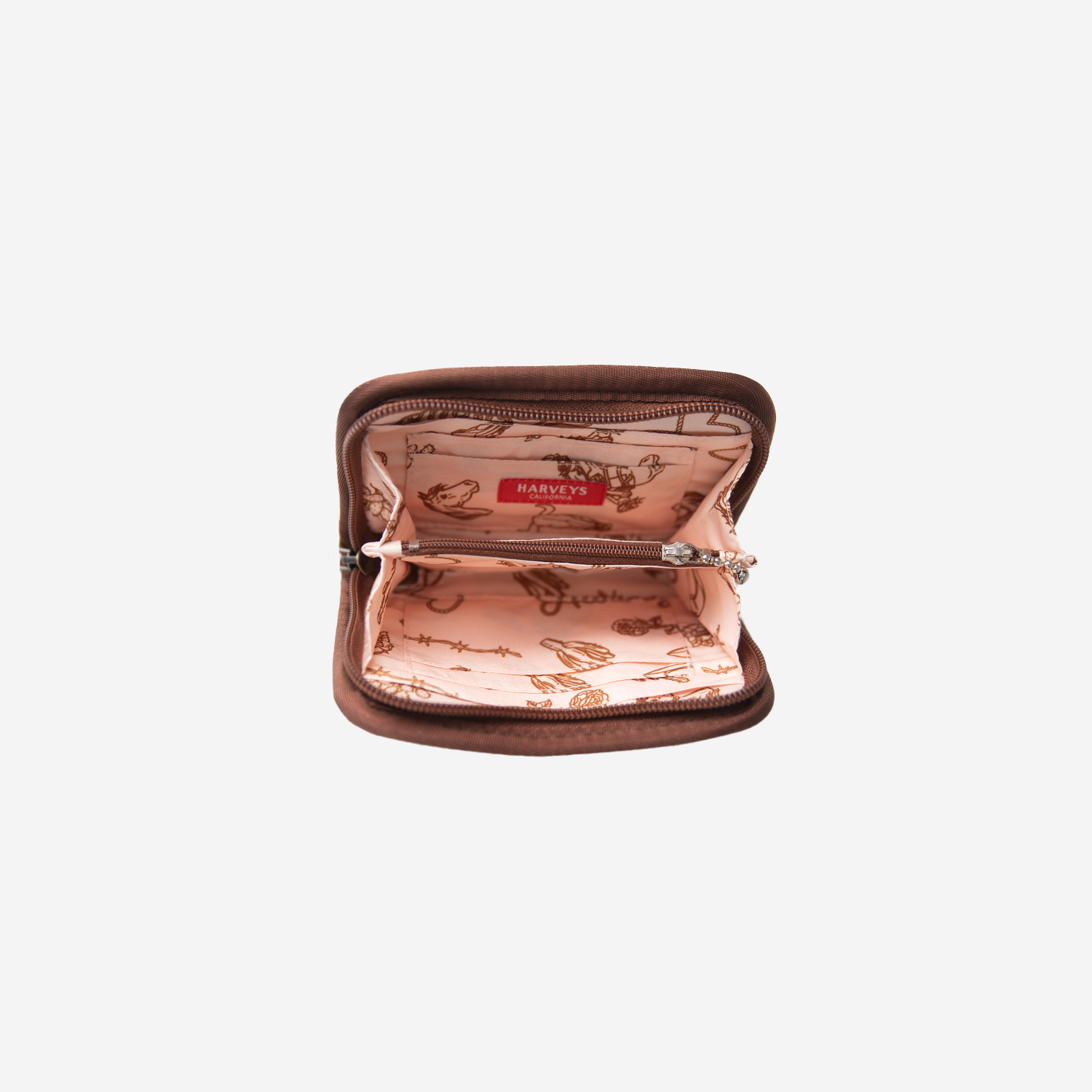 Big things really do come in small packages! The Fun Size Wallet comes with a zipper pocket for change, four card slots, and two additional slip pockets. We added a d-ring so you can accessorize it with your favorite Keychain.