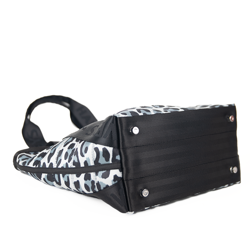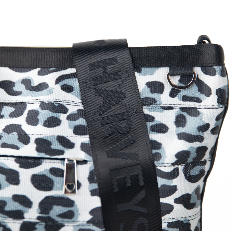 Unleash your wild side with our Ice Leopard Medium Boat Tote. This tote features our Ice Leopard print with our special debossed Harveys handles and our red monogram lining inside. Also includes d-rings perfect for attaching an additional Click n Carry adjustable strap or attaching one of our keychains.