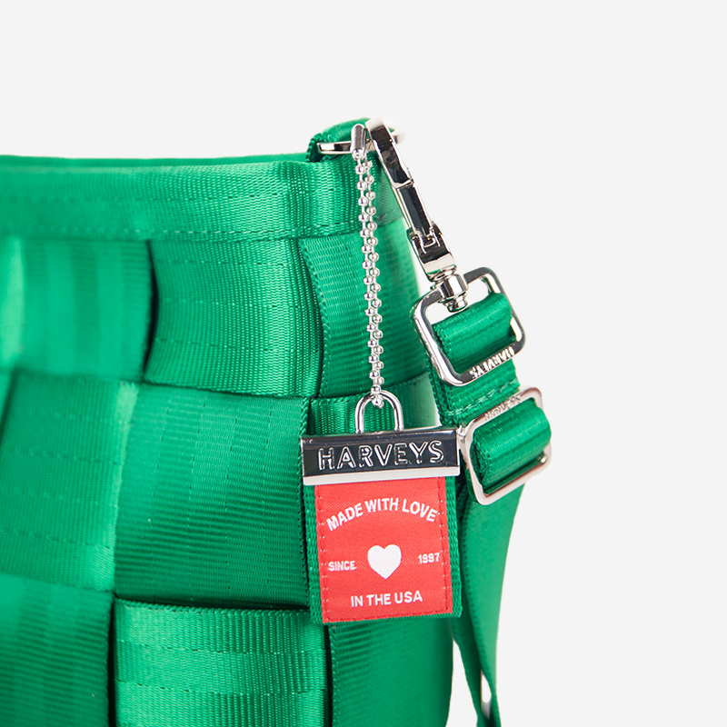 The updated Mini Messenger features our iconic woven seatbelt design with d-rings and a detachable strap so you can mix and match with your favorite Click n Carry. Comes lined with our multicolor monogram lining.
