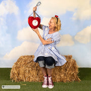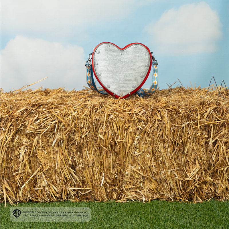 Have a heart with our Sweetheart bag inspired by the Tin Man from The Wizard of Oz! This bag is made from red and silver sparkly seatbelt with embroidered details and metal rivets. Comes with a daisy chain crossbody strap, Tin Man charm, and lining that features Dorothy and the gang.
