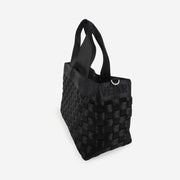 Carry all your essentials and look good while you do it with our Medium Madison Carry-All. This tote has a boxy design that’s hand woven and made out of durable seatbelt. The inside features a snap closure with our silver monogram lining, a zipper pocket divider, inside slip pockets, and a d-ring to keep you organized.
