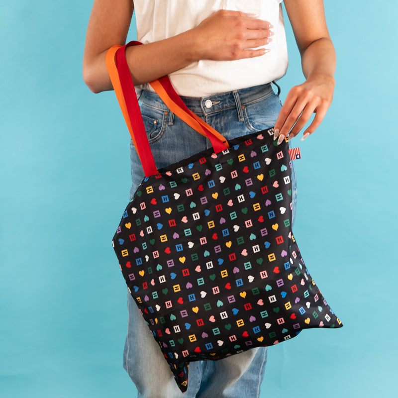 Skip the plastic bag and stay eco-friendly with our Shopper Tote! This tote features our multicolor monogram design and is made from the same durable material that lines our seatbelt bags.